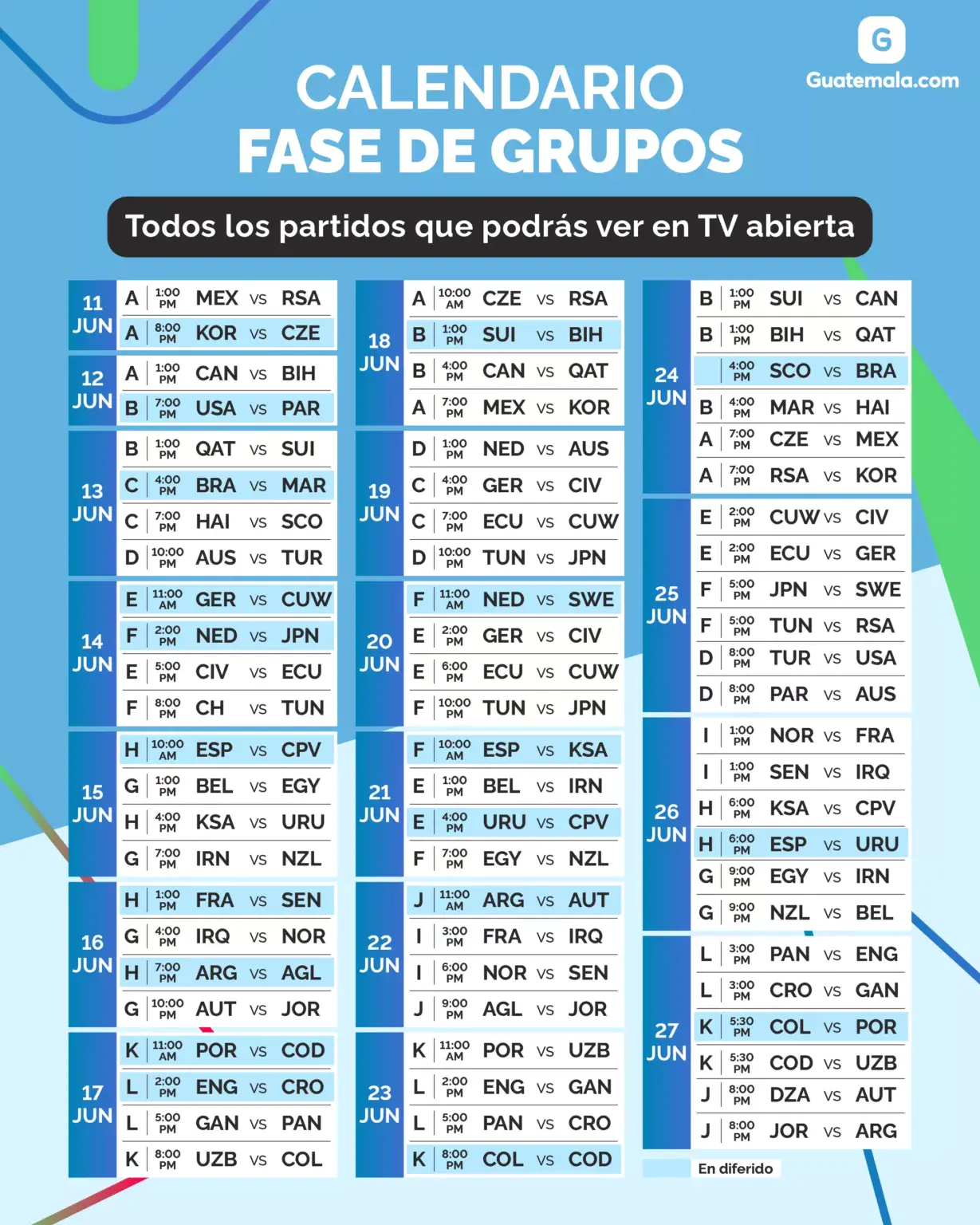 La cobertura televisiva será clave para acercar la emoción a los hogares guatemaltecos. Por ello, han sido definidos canales y modalidades de transmisión que permitirán disfrutar gran parte de los encuentros en vivo, facilitando el acceso a uno de los espectáculos más seguidos globalmente.