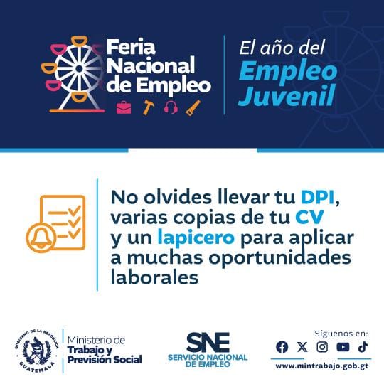 La asistencia estará abierta a personas de todas las edades. Se recomienda portar DPI, varias copias del currículum vitae y, de ser posible, una versión digital del mismo.