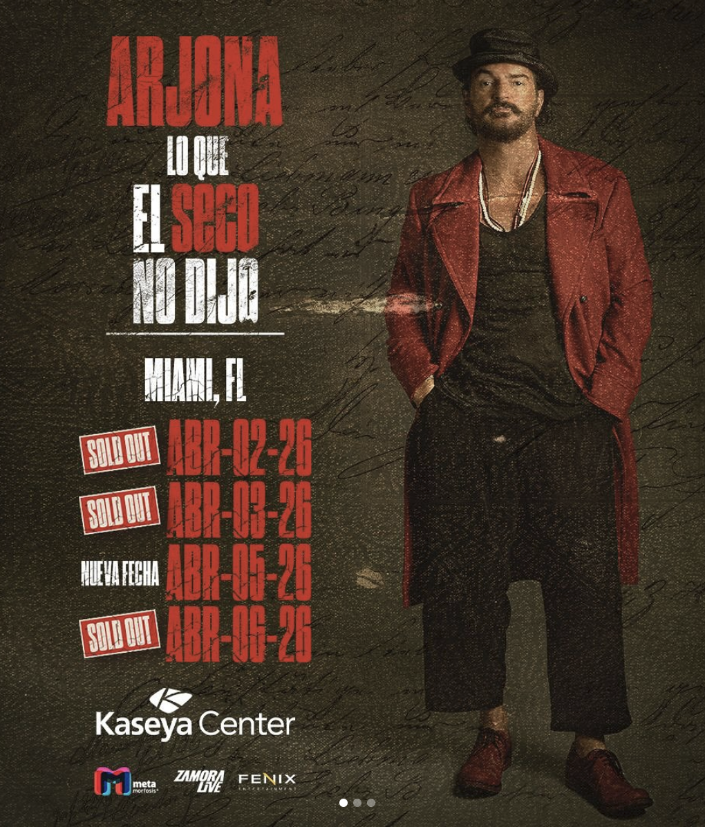 Inicialmente, Arjona tenía programado un solo concierto en Miami. La fecha era el 2 de abril de 2026.